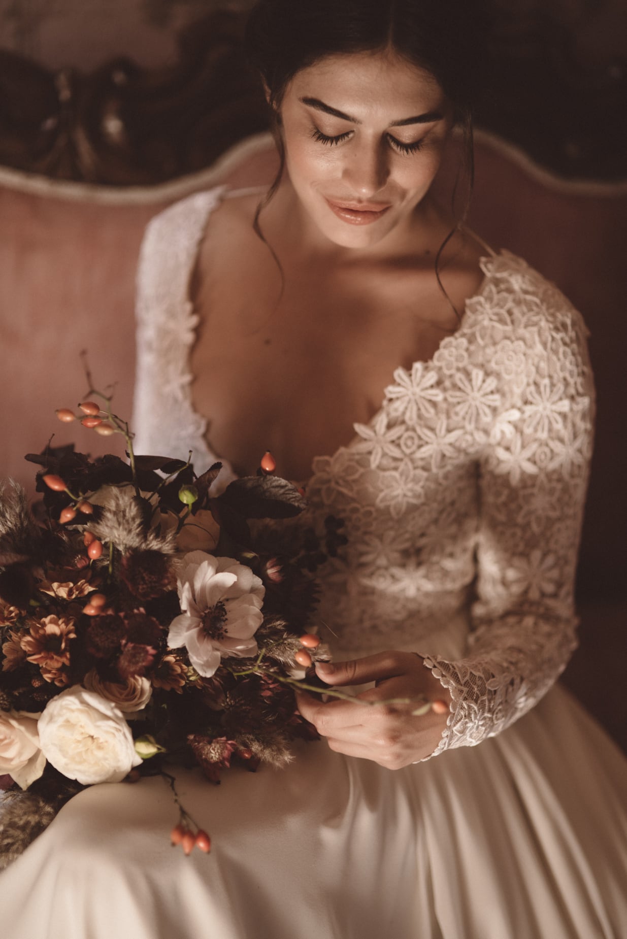 El maquillaje, realizado con sabiduría por Laura Masia, realza la belleza natural de la novia, mientras que el peinado, cuidado por Barbara Sanna y Antonello Schwarzkopf de Antonello Schwarzkopf Hair Stylist, añade un toque de clase y sofisticación.